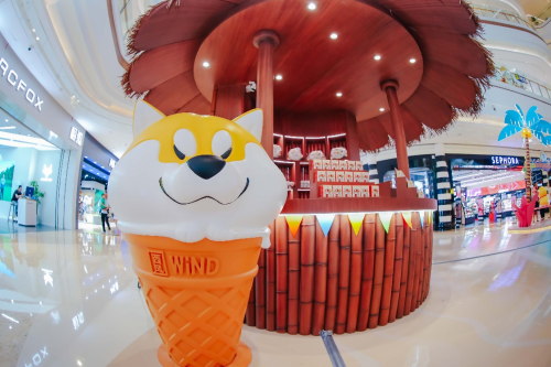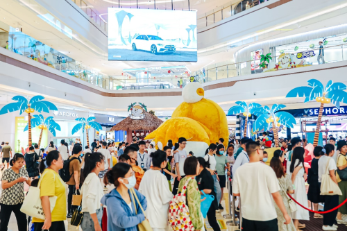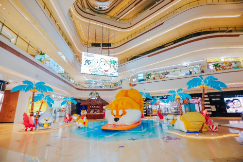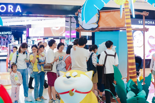 7月8日,杭州大悦城联手《阿柴枸杞》系列卡通作者西风八爪打造 “浪个里个浪”阿柴枸杞全国首展,将巨型阿柴与椰树沙滩场景完美融合,营造体验式、沉浸式的夏日场景,呈现潮趣社交空间。