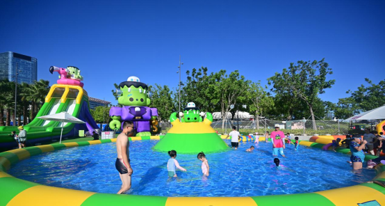 欢乐港湾首个IP主题水上乐园,联合PEPPER SHAKER品牌旗下超萌IP——“绿巨巨”,融合巨型气模玩偶、超长大滑梯、绿巨巨的海盗船水上大冲关、浅潜闭气泳池、水上蹦床、香蕉船、跷跷板等多个主题水上游乐项目,休闲逛买的创意市集,轻松好玩的嘉年华摊位游戏,活泼有趣的节日表演。在这里大显身手,成为今夏最会玩的仔!