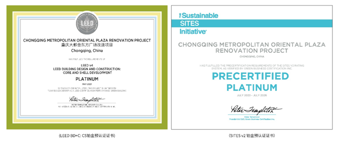 “节能降碳,你我同行”重庆大都会东方广场分别获得LEED和SITES铂金预认证