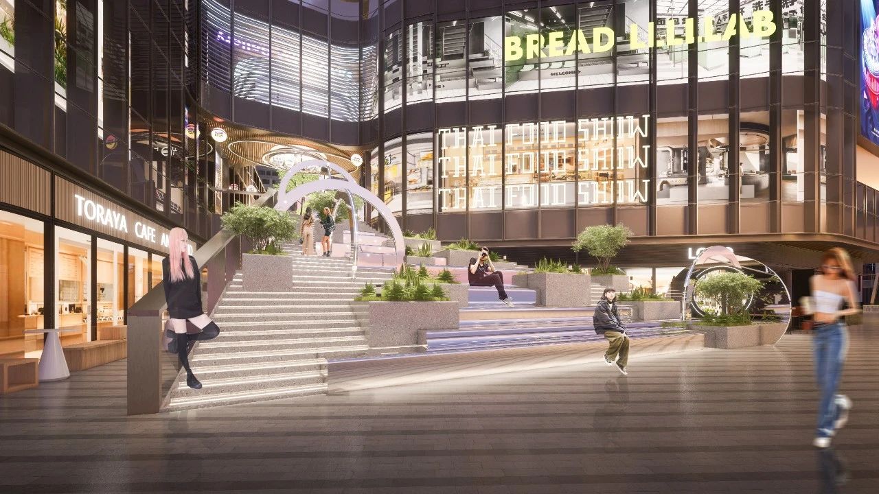 商业空间内涵盖精致餐饮、文创娱乐、休闲购物等,可以一站式体验创媒社群式消费,休憩之余还可以享受THE LIGHT BOX特有的多媒体演绎空间。