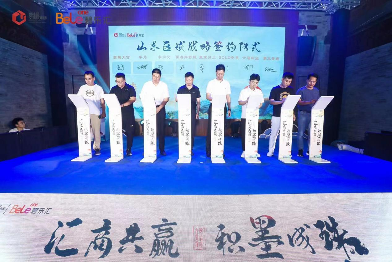 家家悦超市、西海岸影城、麒麟天宫、华为、皇家贝贝、六福珠宝、SOLO电竞、霸王茶姬8位品牌代表上台,与山东两座碧乐汇进行签约,表达了对碧桂园文商旅商业实力的信任和对山东区域未来发展的信心。