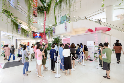 走进一层中庭,所有目光都聚焦于近100立方米的神秘礼盒,粉色的蝴蝶结表达了凯德MALL·大峡谷对美好生活的期许,连同99元团购大礼包、集章打卡等多重优惠及体验一起分享给消费者。