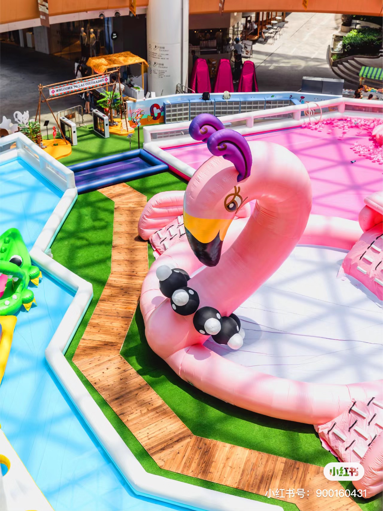 以上海长风大悦城为例,今年夏天,以“墨西哥坎昆粉红湖”为原型,该项目将约1000㎡的梦幻水乐园搬进中央广场,带来10米高邮轮蹦床滑梯、300平水上闯关、500平嬉水池等,还有巨型火烈鸟空降现场,带来丰富多彩的水上体验。
