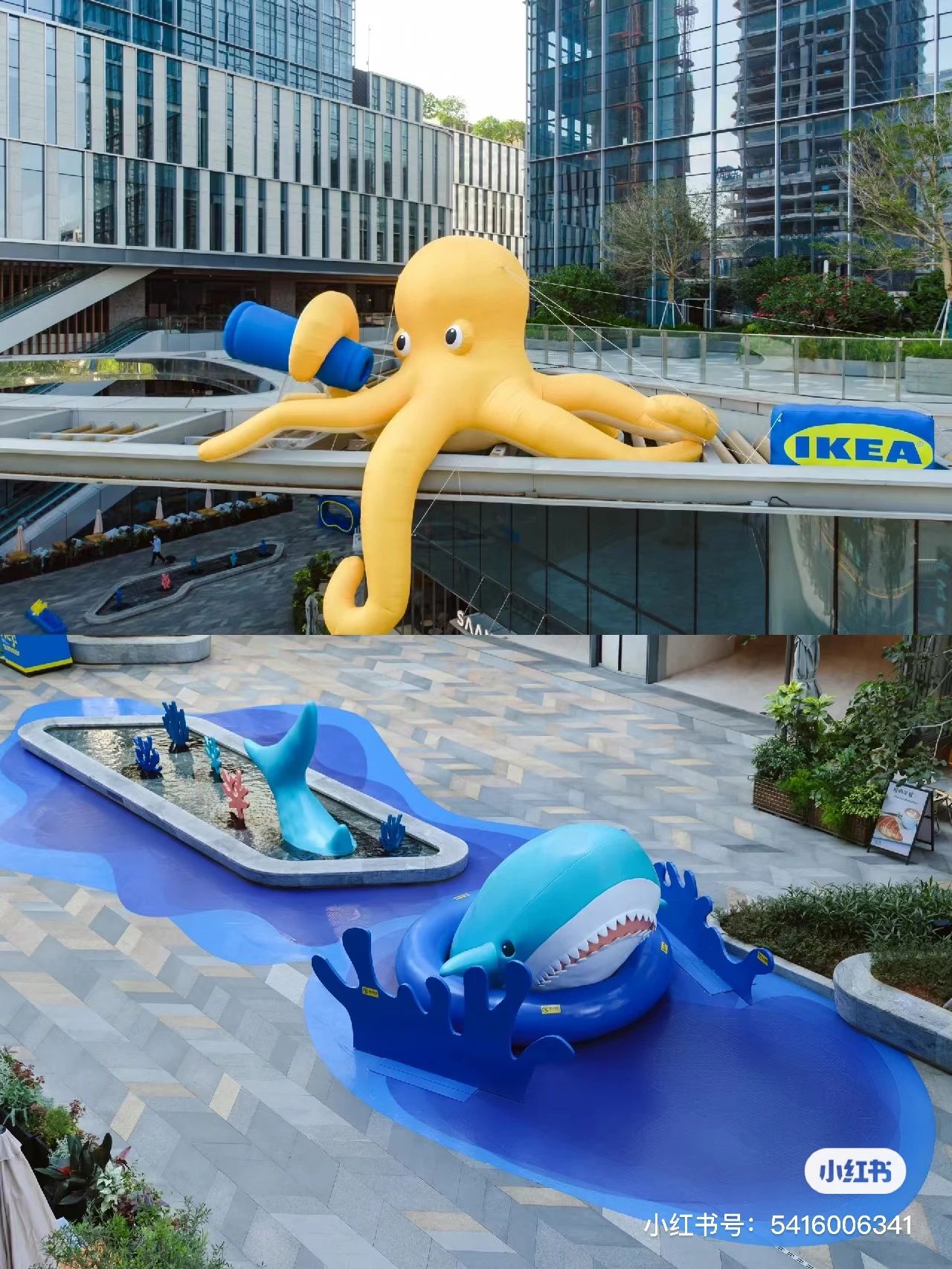 近期,宜家快闪店空降深圳万象食家,以海洋为主题,本次快闪活动除了在中庭打造有产品展示区外,北门街区还有章鱼队长手握望远镜,巨型鲨鱼做出跃出地面之势、巨型冰淇淋倒扣在地面等大型打卡装置,从视觉上,带来一场充满海洋气息的清凉冲击。
