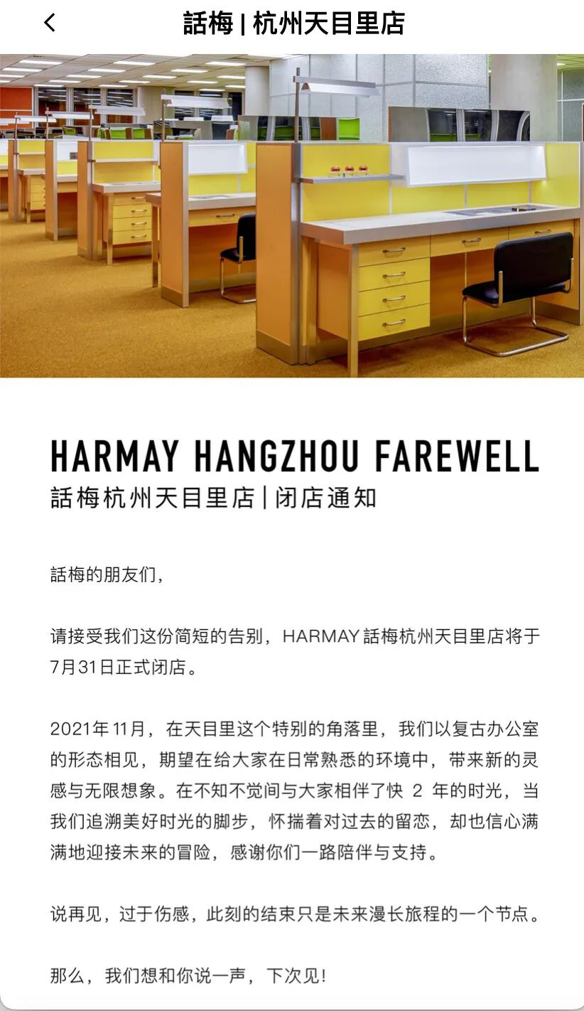 13.HARMAY话梅杭州首店将于7月底关闭