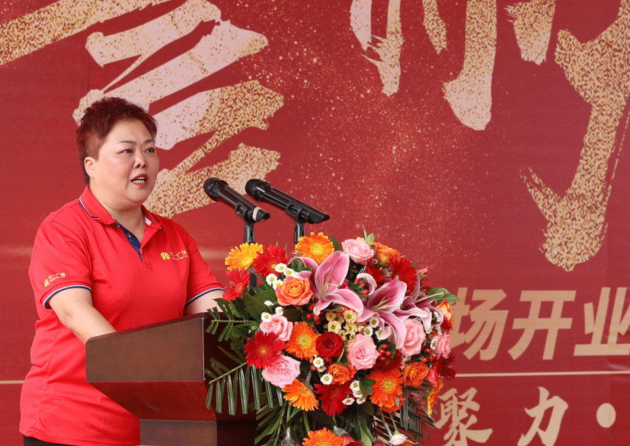 兴一精彩商业管理有限公司副总经理胡跃丰首先发表讲话,她表示面对大环境的市场压力需要战胜一切困难的信心和勇气,在即将开业的决战时刻,商管团队将尽心尽力为商户装修保驾护航,保证商户圆满完成装修工作顺利开业。