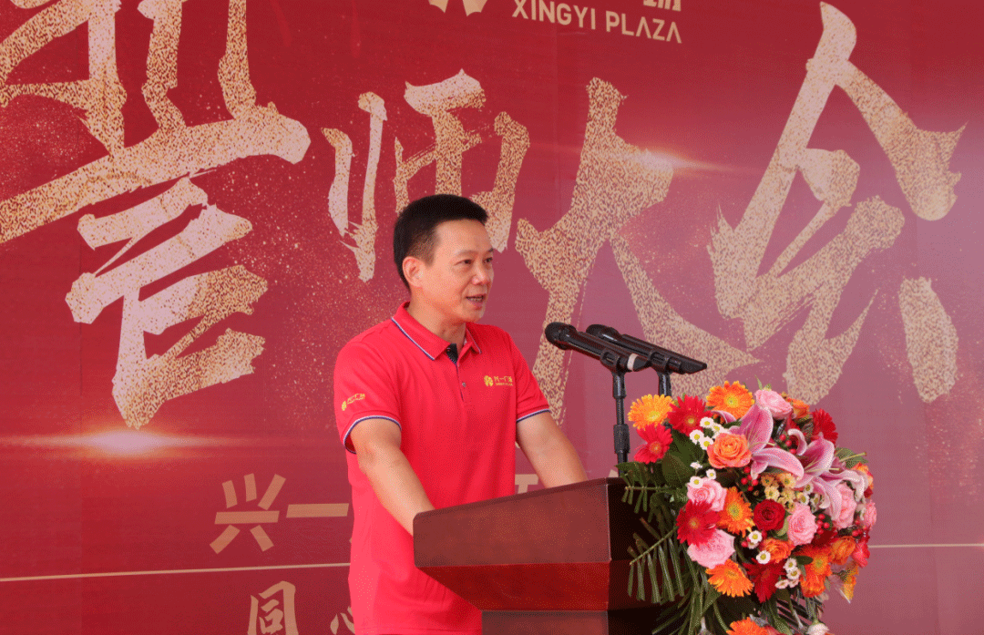 兴一实业有限公司董事长邹国威致欢迎词,感谢商管团队、入驻商户及媒体朋友对兴一广场一直以来的关注支持,他指出兴一广场购物中心的开业,不仅象征着兴宁市将告别传统的商业街,迎来一个购物环境舒适,消费品类丰富,品牌层次齐全的一站式的“全业态,全客层,全时段”的现代购物中心,提升兴宁市民的购物体验。
