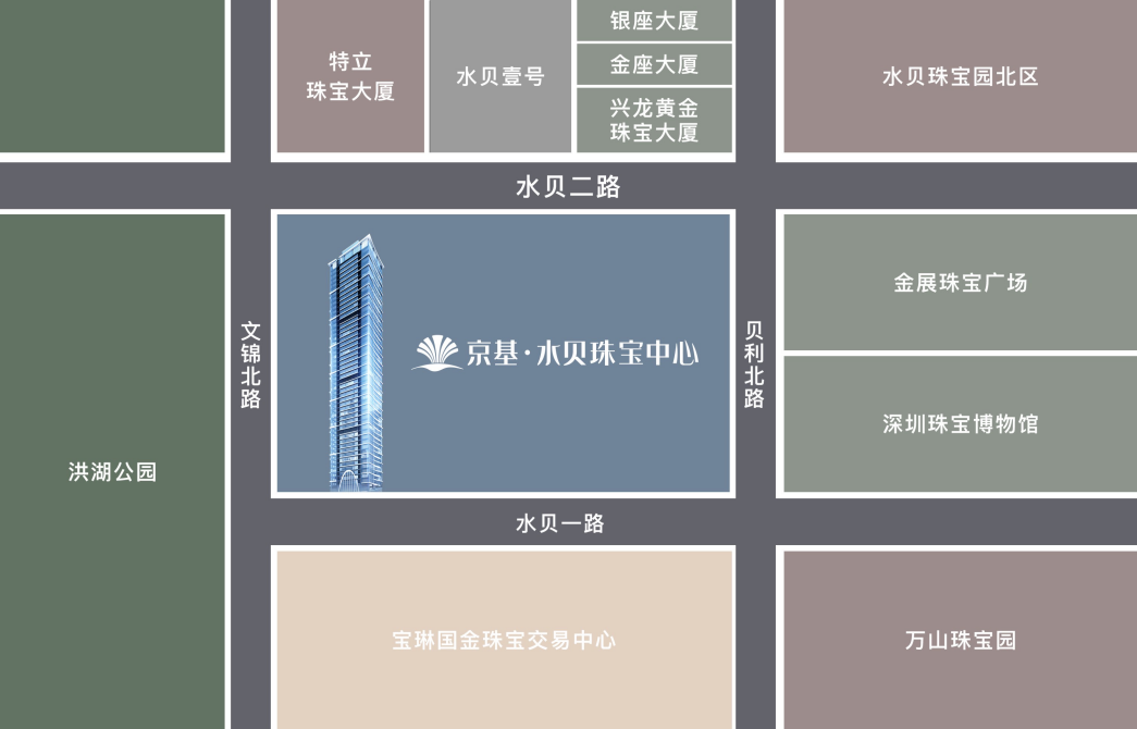 京基·水贝珠宝中心位于罗湖水贝片区黄金珠宝首饰聚集地核芯地段,串联特力珠宝大厦、水贝国际、水贝壹号、水贝金座、水贝银座等形成超大规模黄金珠宝产业集群,以约246米商务旗舰写字楼,迭新水贝片区新高度,再造世界宝都新门户。