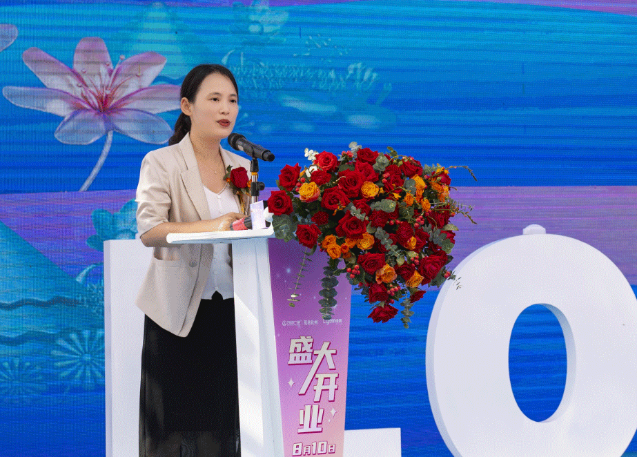 在开业庆典活动上,万达商管集团广州城市公司总经理郑建女士就粤西第四代万达广场进驻化州的里程碑意义进行阐述分享。
