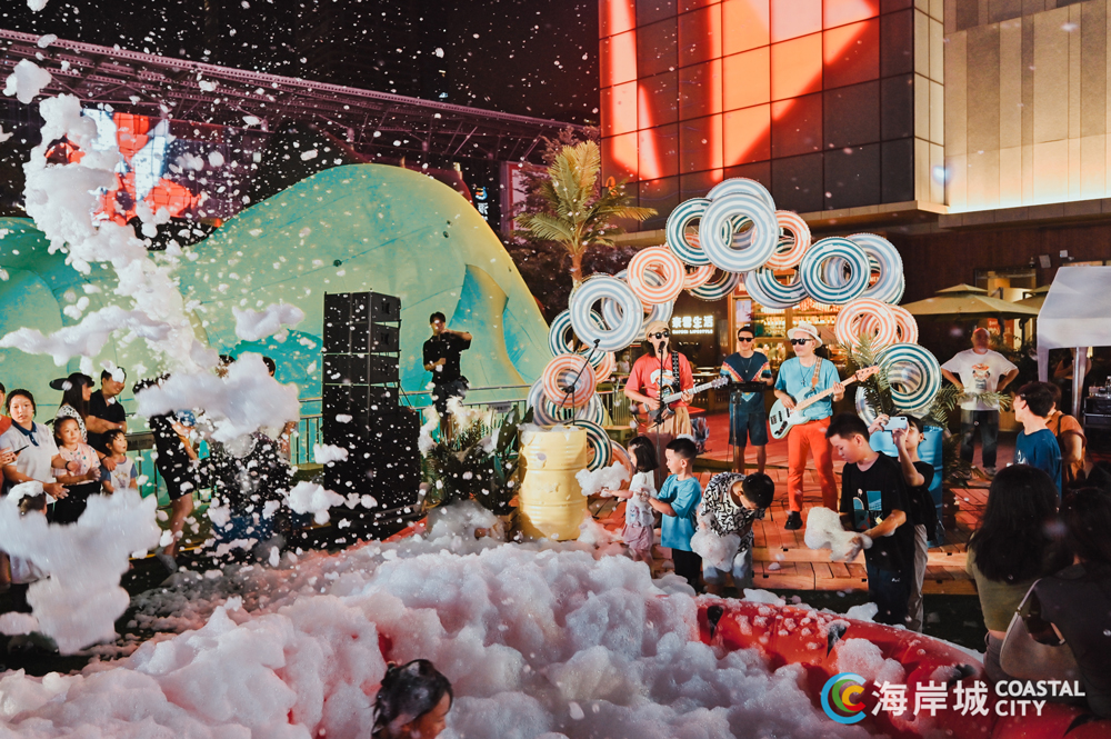 南山海岸城持续引入夜间消费文化和娱乐元素,此次夏日小分子活动现场汇聚打卡兑礼、游戏兑酒、套圈丢沙包、清凉大话骰、陆冲、随机舞蹈、泡泡机快闪等各项活动,高度适配深圳打工人所追逐的精神“松弛感”及“娱乐感”。现场吸引了大批深圳白领及家庭客集聚,形成了独具海岸城特色的夜间集市和高质量网红打卡地。