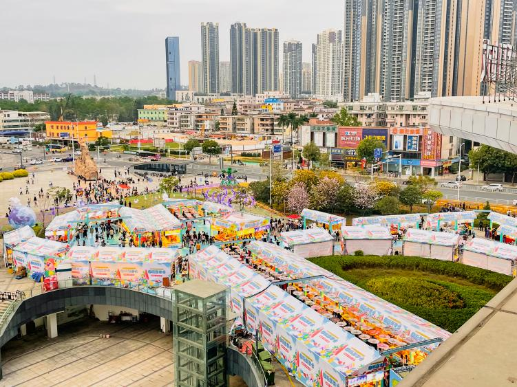除了上述IP、文化资源植入及场景互动外,坪山益田假日世界紧抓地铁14号线、16号线开通带来的巨大优势,深度联动市集资源,以户外游乐摊位经济为引爆点,邀约100+商户推出坪山文化广场首届潮玩游乐园,活动期间单日最高客流达6.8万人次,全时段打造吃喝玩乐购消费体验场景。