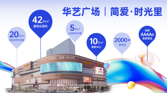 华艺广场·简爱时光里购物中心商业规模10万㎡,拥有2000+停车位,项目汇集高端商务、轻奢名品、精品超市、品牌服饰、全球美食、家居美学、休闲娱乐、亲子陪伴等,塑造以“艺术、圈层、定制生活”为核心的高品质一站式城市环贸中心。
