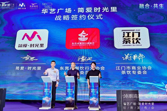 华艺广场·简爱时光里项目体量之大、模式之新,吸引了东南海大酒楼、名购奥特莱斯、华益台球俱乐部、大力健与美健身、探险阳光乐园、六福珠宝、非烤勿扰餐饮集团、联域电讯、老凤祥、大赞寿司、亿烤天下、湘溪、蒙古人家、湘满楼、探炉、万岁寿司、周大生、悦适棉品、聚满分、Kappa、精功/大众/博士、堡马男装、水厂潮饮、鸽宴、小许同学、芝华仕贵族、顾家家居、左右沙发、HTL全球沙发大师、斯帝罗兰、席梦思、丝涟、舒达、慕思、德国美得丽、欧派、皇朝定制、雅兰、喜临门、华帝、老板电器、A.O史密斯、蕾丝、CBD、香港海马国际等近50家实力品牌商家意向入驻,发布会上举办了隆重的战略品牌签约仪式,开启合作共赢、融合发展、流量叠加、互为增量的湾区商业经济新时代!