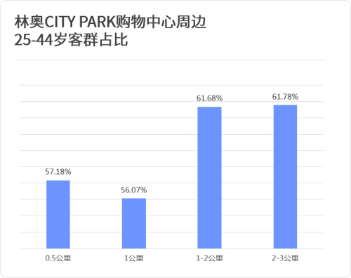区位与配套的绝对优势,为林奥CITY PARK购物中心聚合了稠密的中高端收入人群。据赢商大数据监测,林奥CITY PARK购物中心周边2~3公里范围内,小康及中产人群占比超80%,消费实力出众;25~44岁客群合计占比超过60%,消费意愿强烈,消费需求多元,可挖掘的消费潜力大。