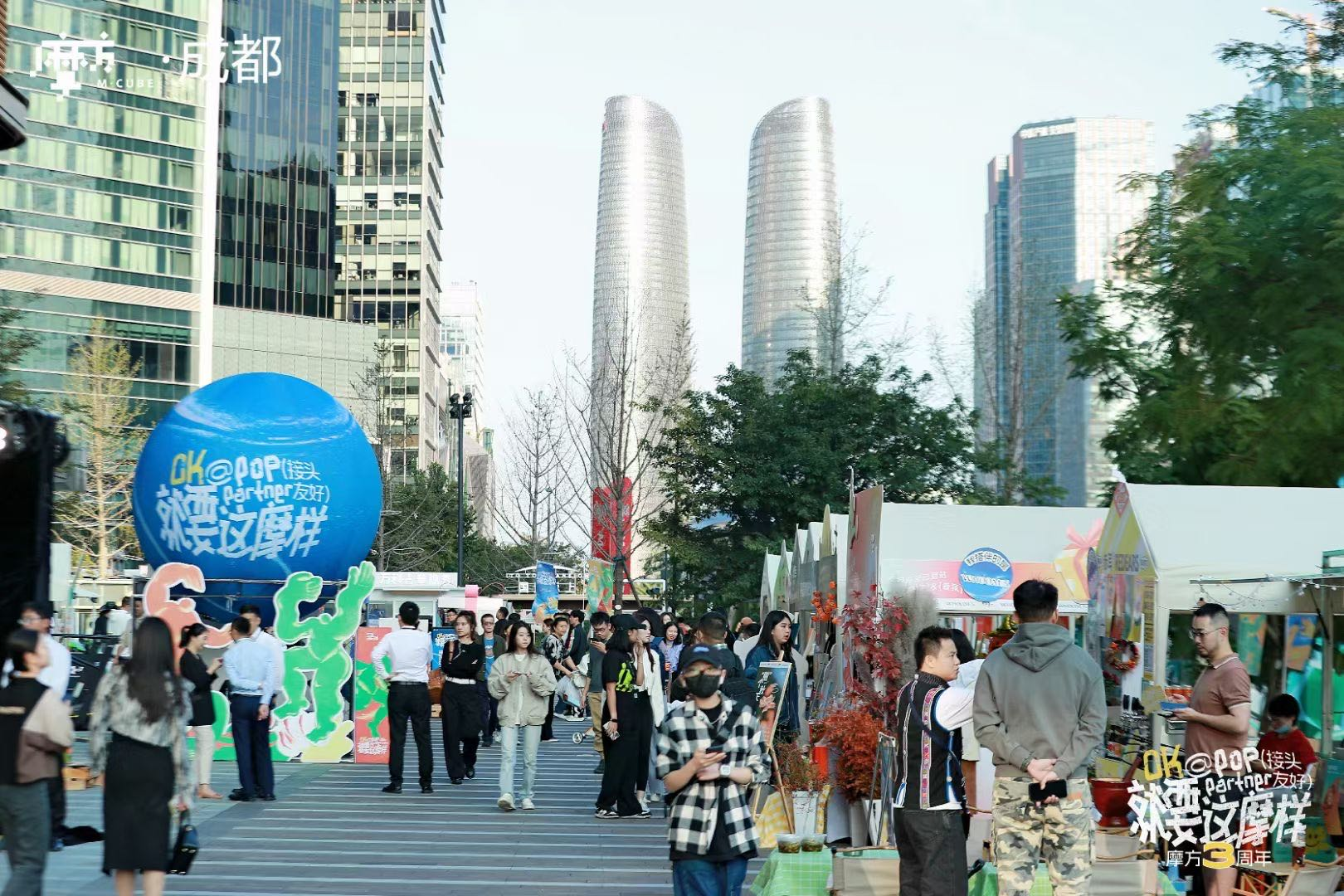 持续为城市提供时髦新鲜生活方式的合景·摩方(成都),本次摩方3周年,立足成都的街区文化,发挥商业公共空间的公共属性,时髦场域化造景,以“双子塔下·生活能量”为主题,以一场连续3天的周末派对+户外酒肆生活方式嘉年华+演艺+互动的综合形式呈现,延展在地街区文化并更新为接头文化,缩短社交距离,打破社交藩篱。