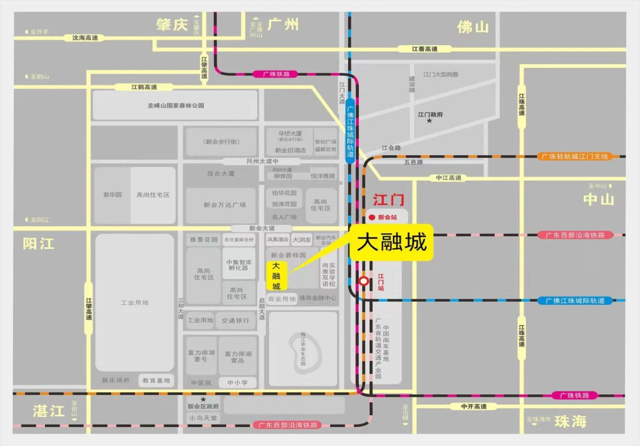 首先是地段。一定程度来说,项目并不像大多存量改造项目地处衰败的老城区。相反,它位于珠西枢纽新城的核心位置,连接启超大道、新会大道、江门大道三个城市主干道,距新会核心城区和江门市中心的车程分别为2分钟、15分钟;在它周边,亦分布着片区主要的商务中心、中高端楼盘及生态园等旅游资源。简言之,这样商业价值较高的区位,即便是新项目选址也会是个优选项。
