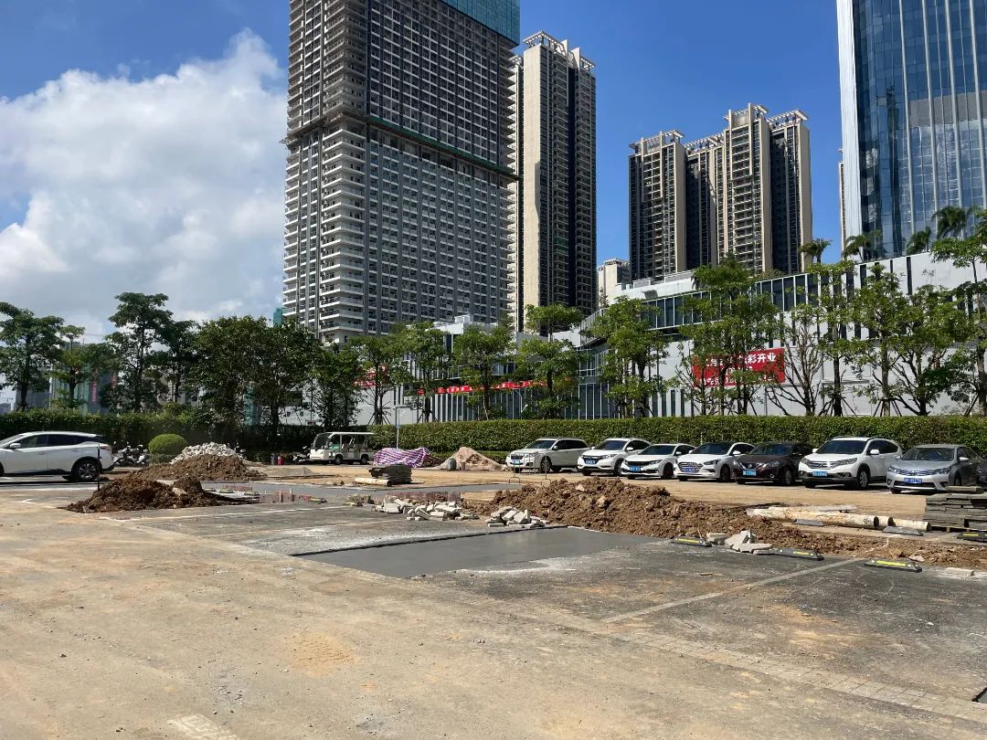 在花园城的南侧,是招商国际邮轮城的营销中心与配套停车场,最近停车场也开始改造,目前是拓阔边缘与移出部分绿化,拓宽新道路方便顾客直接到达商场1号门。