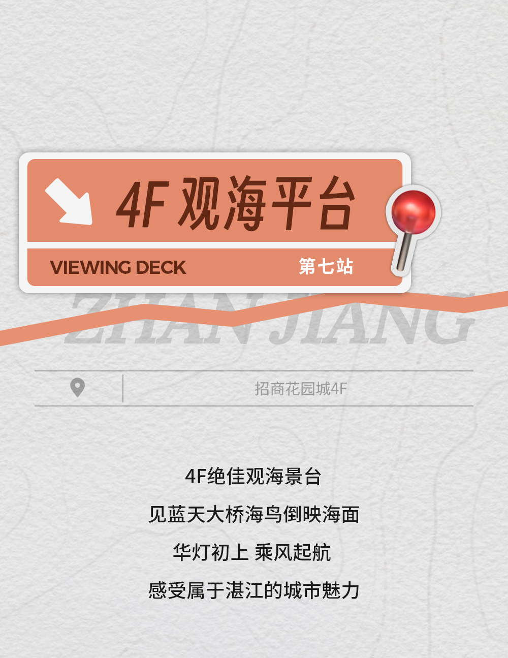 建筑与海相融、与自然交融,即便身处繁华CBD之内的湛江招商花园城,也能轻易让当地消费者和旅客沉浸至“微假”当中。九大打卡地图,引领港城新势,为湛江注入全新的生活方式。▼