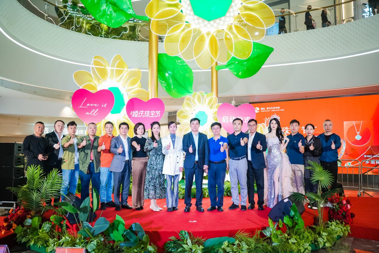 11月11日,双十一正热火朝天进行的当天,一场以珠宝文化为媒介,以爱创造美好生活方式的首届“婚庆珠宝节”在KK TIME全生活购物中心正式启幕,成为行业现象级热议话题。本次活动由KK TIME及臻选·珠宝生活空间联合举办,在当天下午的启动仪式上,深圳市大鹏新区文化广电旅游体育局局长肖浩、罗湖区文化广电旅游体育局副局长宋丽清、大鹏街道党工委副书记、办事处主任光晖,翠竹街道办事处副主任、公共服务办(党群服务中心)主任、街道妇联主席陈丹,深圳市黄金珠宝首饰行业协会执行会长杨绍武、婚庆行业协会会长崔建民、深圳幸福天下投资有限公司董事长李建齐、臻选·珠宝生活空间董事长钟亚建、KK TIME总经理罗静华等众多嘉宾受邀出席,2021国际联合国小姐深圳冠军林晓敏作为特邀嘉宾惊喜亮相。