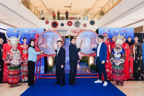 伴随着场中铿锵有力的鼓声响起,2023凯德青少年创想家“让世界看见”公益市集正式开集。新加坡驻成都总领事馆总领事陈知恩,重庆彭水苗族土家族自治县乡村振兴局党组书记王迎春,凯德投资(中国)商业管理首席执行官杨钦富,中国民间商会副会长、依文集团董事长夏华及媒体等近百位嘉宾,在现场见证了开集仪式,并沉浸式体验重庆彭水苗族风情的独特魅力,亲身感受文化民俗的“传承之美”。
