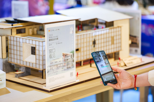 现场观众为建筑设计大赛作品投票