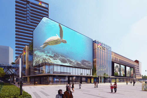 此外,还有巨屏面积约740平方米的华北地区最大的裸眼3D屏,以前沿潮流设计形成富有个性与时尚感的城市化亮点标签,以超高清视频技术为消费者呈现裸眼3D视听盛宴,为消费者带去前所未有的视觉冲击效应,将点亮城市商业新名片。