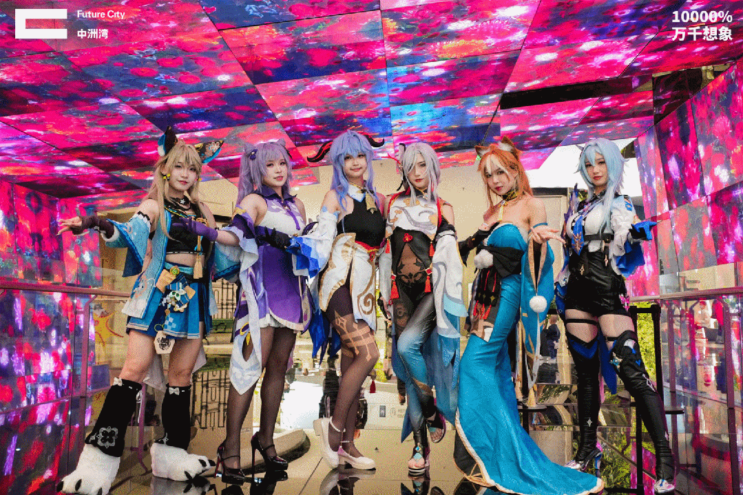 作为主打年轻时尚与艺术的潮流Mall,中洲湾C Future City拥有大量Z世代客群,他们有着自己的潮流语言和亚文化圈层,对二次元文化、国风国潮、游戏电竞、潮玩酷物、新舞音文化、偶像饭圈、街头户外等有着较高的热度。在一周年庆典中,中洲湾C Future City强化了对年轻圈层文化的内容制造和输出,将商业空间变为复合多元的年轻力社交场域。