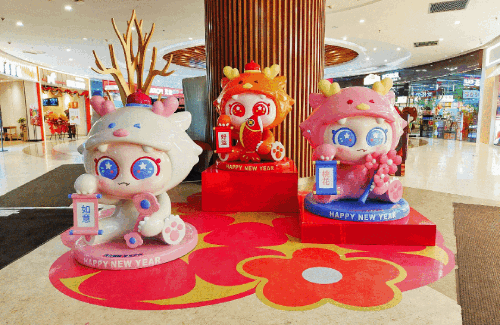 在首都北京,北京西单大悦城携手国潮波普艺术家魏一番先生,打造的国潮新年装置艺术展「仙龙大悦」波普艺术全国首展,以轻松顽趣、乐观向上的国潮龙IP「仙龙掌」为主形象,呈现一个最有趣的龙图腾形象;1月27日还将有「猫福珊迪装可爱Q萌粒粒公仔快闪店」北京首站登陆,快闪店以冰淇淋配色为主题,将带来20余款迷你鲨鱼猫粒粒以及丰富周边,解锁清新可爱系新春佳节,活动将持续至2月25日。
