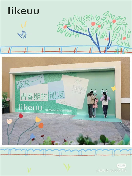 根据披露图片看到,目前门店已围挡。且近日品牌联合8家书店和出版机构发起了“青春期怎么这么难啊?”的话题,与首店围挡形成联动,设置了互动打卡装置,为likeuu第一家线下门店开业造势。