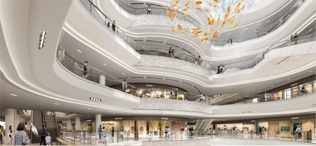 空间设计将繁华商业与松弛社交完美融合。与亚洲最大规模之一的室内设计公司携手,规划了系列室内外的休闲步道和下沉式广场,既增强了空间的美学吸引力,又提升了消费者的舒适度,造就城市级美好生活的多元体验。