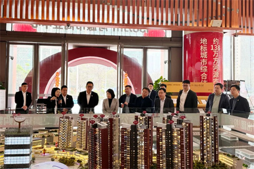 调研团一行参观了河源市商业中心项目。2022年,该项目凭借规划布局、功能品质、文化特色、综合效益等优异方面,与华润集团旗下深圳湾万象城一起被成功评选为第三批广东省级示范特色步行街(商圈)。目前,该项目是粤东、粤北地区定位最高端、业态最齐全、配套最完善、运营最成熟的城市综合体项目之一。调研团一行对坚基集团在硅材料研发生产、城市运营等方面取得的成就给予高度的肯定和赞赏。