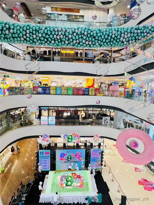 18:30,本地说唱厂牌 DJ 打碟开场,吸引众多顾客。随后 Rap 男女歌手说唱拉开序幕,11名儿童齐舞。洛阳王府井总经理张萍与两店班子团队上台致谢,在倒计时后绿色和银色气球雨飘落,领导班子与顾客一同分享9周年生日蛋糕。