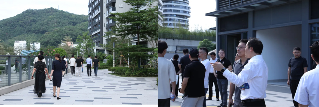 随后,深圳华强高新产业园投资发展有限公司副总经理谭馨女士对园区的五号地块及七号地块综合体进行了介绍,并带领大家一同参观了园区的5号地块商业街区。大家对园区的建设及发展都给予了极大的肯定。