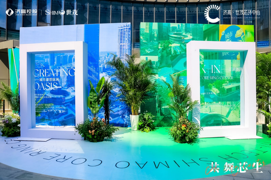 在发布会现场,随处可见生态景观,诠释了未来济高·世茂芯环中心,对于“自然系审美”的主张。现场以“绿意美学”包容多元主题,围绕“城市理想绿洲”概念延展,以自然绿意延伸非标商业综合体的“开放性、体验性、生态性、社交性”。