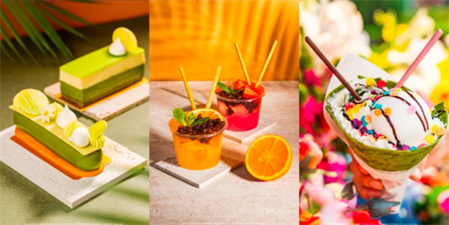 清爽一夏,落霞餐厅为食客们奉上鲍鱼方肉、蟹黄拌面、中式拼盘、伯爵茶树莓芝士蛋糕配黑莓汁等爽口中餐及甜品。园区内的多间餐厅及美食亭带来约 20 款夏日冰饮和小吃新品,如吸睛又解暑的西瓜青提特饮、芒果冰粉以及补给夏日能量的美味酥皮肉夹馍等。