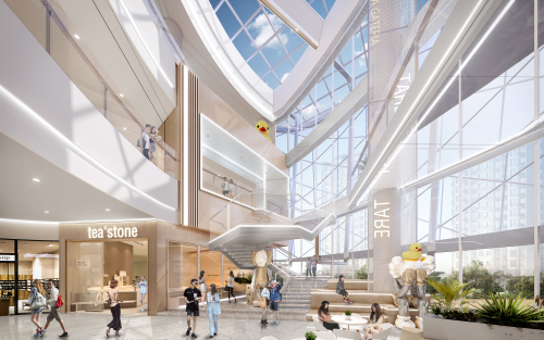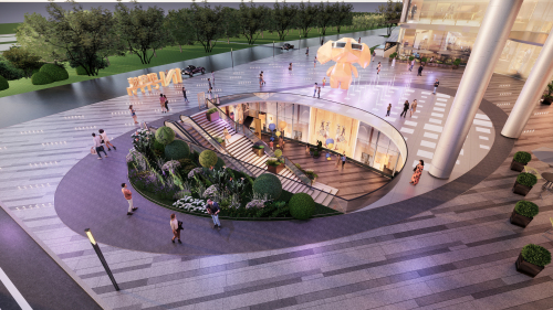 3.将自然空间融入再深入。利用自然落差打造双首层的设计。联通内庭院的社交中庭,利用自然光线与绿植元素,创造出宁静舒适的休闲氛围,吸引顾客在此悠享午后时光,为邻近店铺引入稳定客流。主中庭作为项目的视觉焦点,是项目内容最佳的生产地,形成强大的磁场效应。