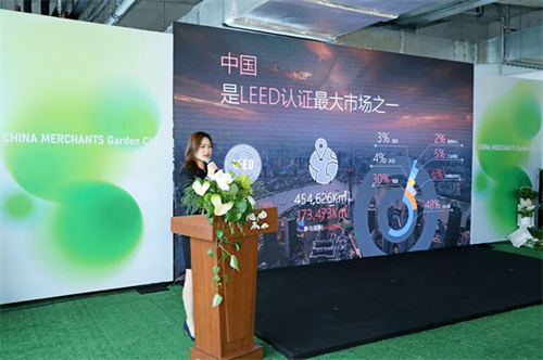 在随后举行的LEED O+M金级授牌仪式中,LEED北亚区副总裁王婧为成都大魔方招商花园城项目进行授牌。