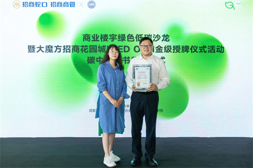 同时,四川联合环境交易所还向项目颁发了《碳中和荣誉证书》,对招商蛇口、招商商管在推动绿色低碳发展方面的行动和成果予以高度肯定。