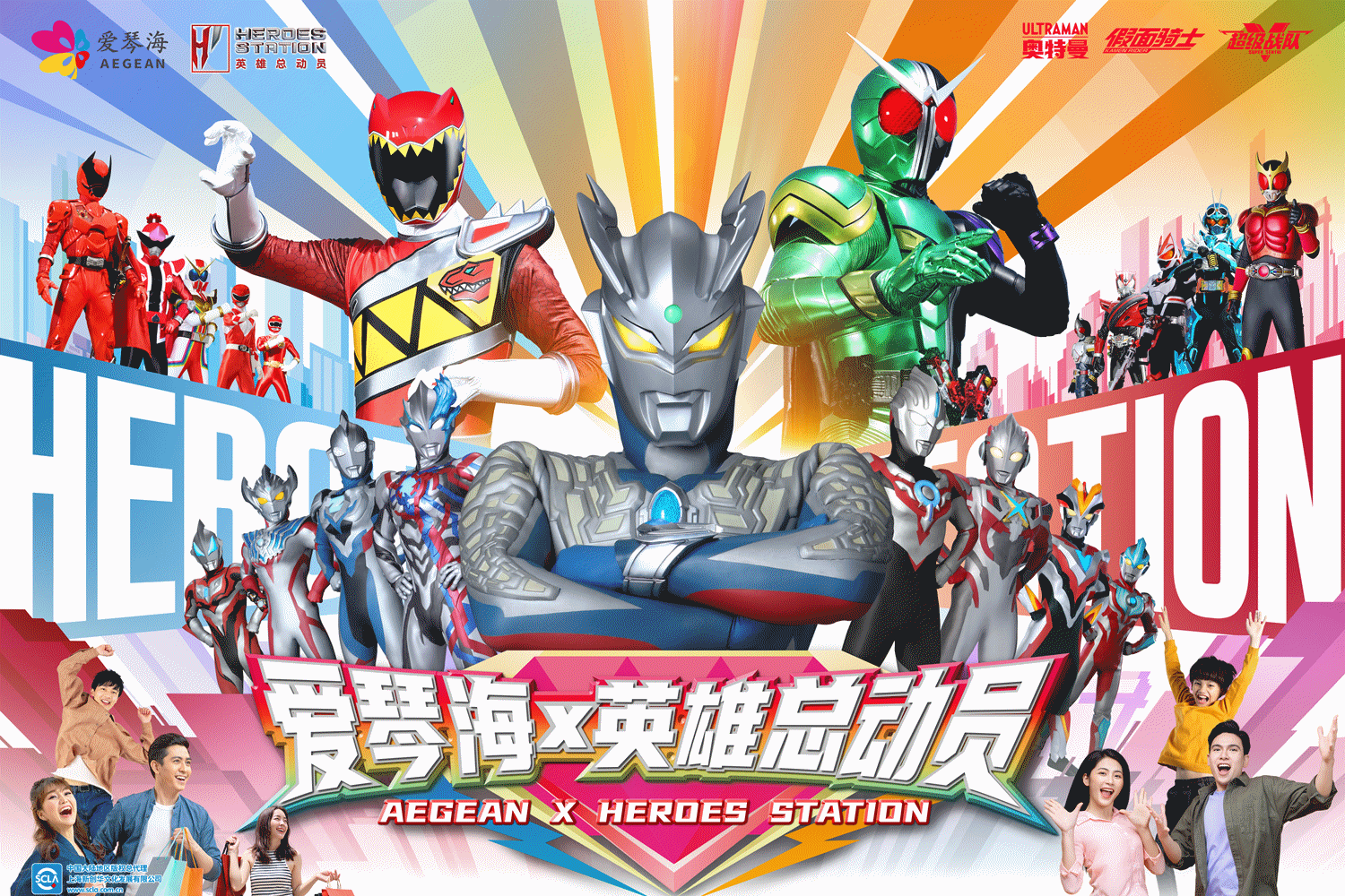 2024年,沿用这一思路,爱琴海继续遵循消费者喜爱的原则,并配合“品效合一”助力商户提升流量与业绩的策略,将集团级的品牌形象代言人合作迭新为集团级大IP矩阵联合的方式——携手“HEROES STATION英雄总动员”,合作品牌涵盖“奥特曼”“假面骑士”“超级战队”三大特摄英雄系列。