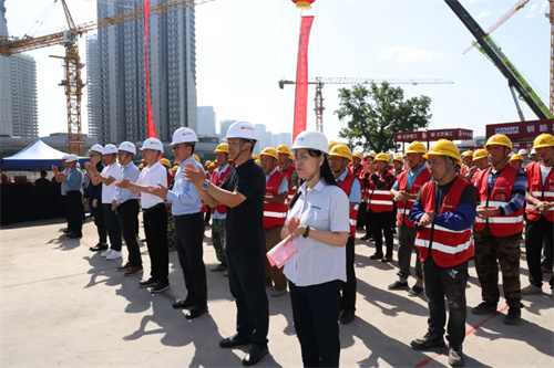 北京市通州区运河商务区党工委书记、管委会主任张逢,绿地集团京津冀事业部负责人颜凡,北京六建集团党委书记、董事长曹常海,北京银建建设工程管理有限公司董事长潘自强以及各参建单位代表出席仪式。