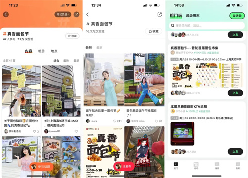 本次烘焙市集,最终凭借良好口碑及在线的宣发节奏,收获小红书及点评平台1600+篇UGC笔记,真香面包节在双平台话题数据达23.4W次浏览。在粗门平台的上海首页登上热门,全平台总曝光12W+。