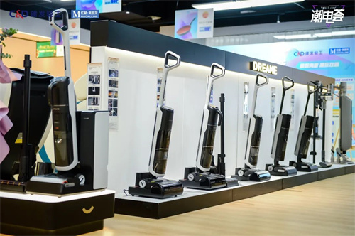 据了解,潮电荟位于该商场高端电器馆核心位置,面积750㎡,已引进LAURASTAR、摩飞电器、戴森、凯迪仕、德施曼、咖博士、德龙、科沃斯、追觅、奥佳华、福腾宝、赫兹、斯泰得乐、採光等14个品牌,包含熨烫机、咖啡机、吹风机、扫地机器人、洗地机、智能锁、电动牙刷等超300个SKU。店内设有烹饪烘焙区、观影休闲区、咖啡吧、按摩体验区、直播中心等丰富场景。