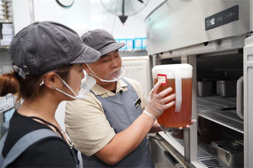 门店经理介绍如何管理茶汤效期。林周楠/摄