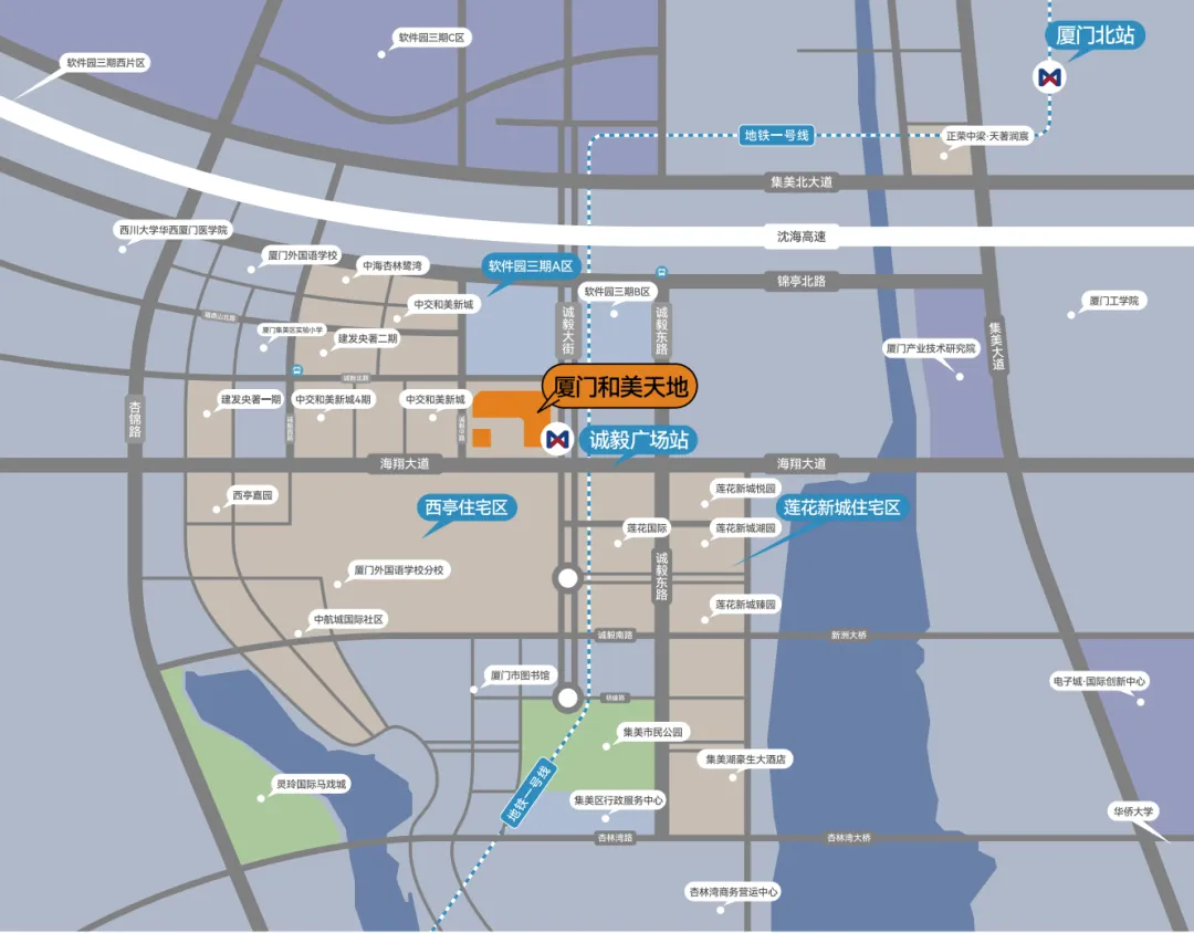 从具体区位来看,厦门和美综合体这一“核心剧目”亮点颇多。地处集美新城中轴核心,享跨岛发展一线红利;是接驳地铁1号线“诚毅广场站”的TOD项目;周边还汇聚众多产业园、办公楼、成熟住宅、17所高校等,坐享多元优质客群。据官方预计,项目3公里范围内,拥有常住人口40万+,办公人口20万+,商业价值不容小觑。