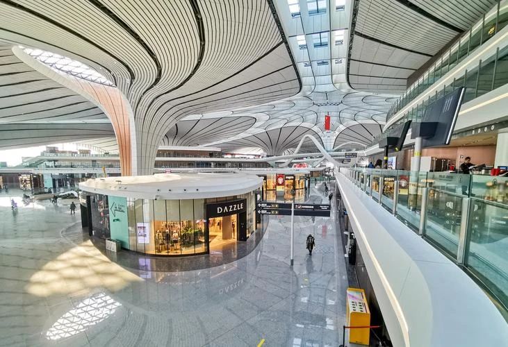大兴机场拥有约1.8万平方米的零售商业面积,其中包括1.2万平方米的有税区域和超过5000平方米的免税区域。商业布局上,采用中央区域集中布局与各指廊交叉布局的设计,与机场独特的五指廊结构相契合,形成多元化的商业空间。