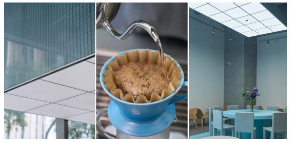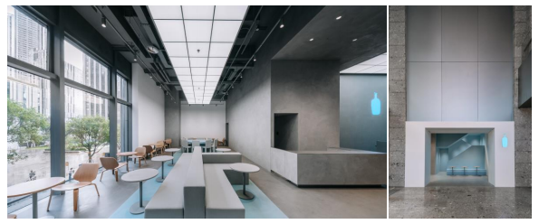 一如这座未来之城求新求变的先锋态度,蓝瓶咖啡首次与来自中国香港的年轻建筑师团队——COLLECTIVE合作,用充满想象力的方式,叠加自然肌理、当代文化与未来风格的笔触,让深圳的创新、活力和包容跃然眼前。从高楼林立的万象天地高街步入门店,层次渐变的大面积海蓝色调,贯穿一层及二层空间,就像是进入了沉静的海洋,带领顾客开启对于咖啡的探索。由同色系磨砂亚克力叠加不锈钢网格打造的主吧台与吊灯,搭配以整齐格纹线条处理的吊顶白光,勾画出前卫的科技质感;吧台上本店限定的蓝色定制滤杯,明亮灵动,完美地融入整体环境,作为目前全球唯一使用蓝色滤杯的蓝瓶门店,让蓝瓶标志性的手冲咖啡艺术更添新趣。