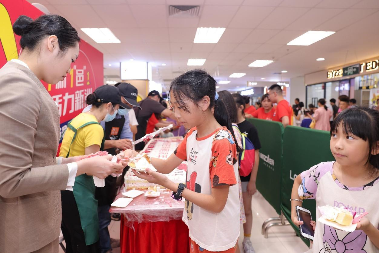 切蛋糕仪式结束后,免费派发给观众品尝。现场观众纷纷自发排队等候领取生日蛋糕,与佐阾新邑一起分享这一开心的日子,也同时祝愿新邑越来越好!