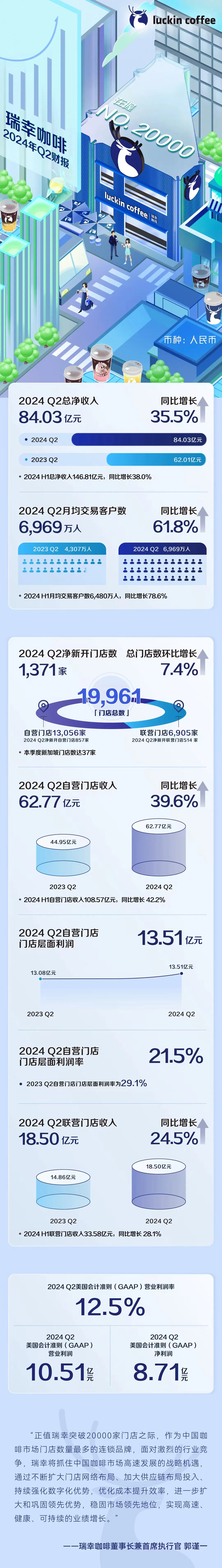 瑞幸咖啡2024年第二季度总净收入超84亿元 同比增长35.5%