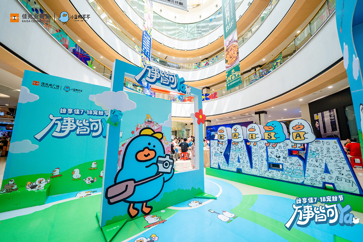 ——从物质消费到情绪消费全维度拿捏:内容端口上,佳兆业商业通过具有情感价值的场景氛围撬动消费者的关注。今年佳兆业商业携手知名漫画家喃东尼(代表作《友谊小船说翻就翻》)最新IP力作“小蓝鸭”,带来“万事皆可YA”全国首展,同步举办好运市集,内含“Let’s Golf、欢乐套鸭鸭、城市拍照墙、心愿便利贴”等10大会员互动体验区,让消费者在这个夏天好运拉满。此外“小蓝鸭”表情包展、专属社群“找鸭鸭 赢周边”等互动游戏也十分契合年轻人的生活方式,参与度极高。场景吸引人,7·18宠粉卡、餐饮/零售/配套团购等优惠活动则“留住人”,完成流量闭环。