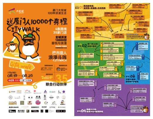 在此事件中,深度链接城市35位极具特色、与大悦城品牌调性匹配的主理人,开发出四条 “橙市猎人 捕捉浪漫”CITYWALK路线:葛优躺专线、喝一杯OK线、日落大道线、隐藏大片线,联动红点设计博物馆、三影堂摄影艺术中心、虎曼咖啡、鼓浪屿当代艺术中心、晓学堂文化虫洞书店等35家咖啡、文创、酒吧、唱片店等领域品牌主理人,共同打造一场慢节奏、沉浸式的城市探索体验。